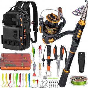 THKFISH Fishing Rod and Reel Combo with Backpack, Telescoping Fishing Pole Spinning Reel Kit with Fishing Lures, Pliers and Fish Lip Gripper
