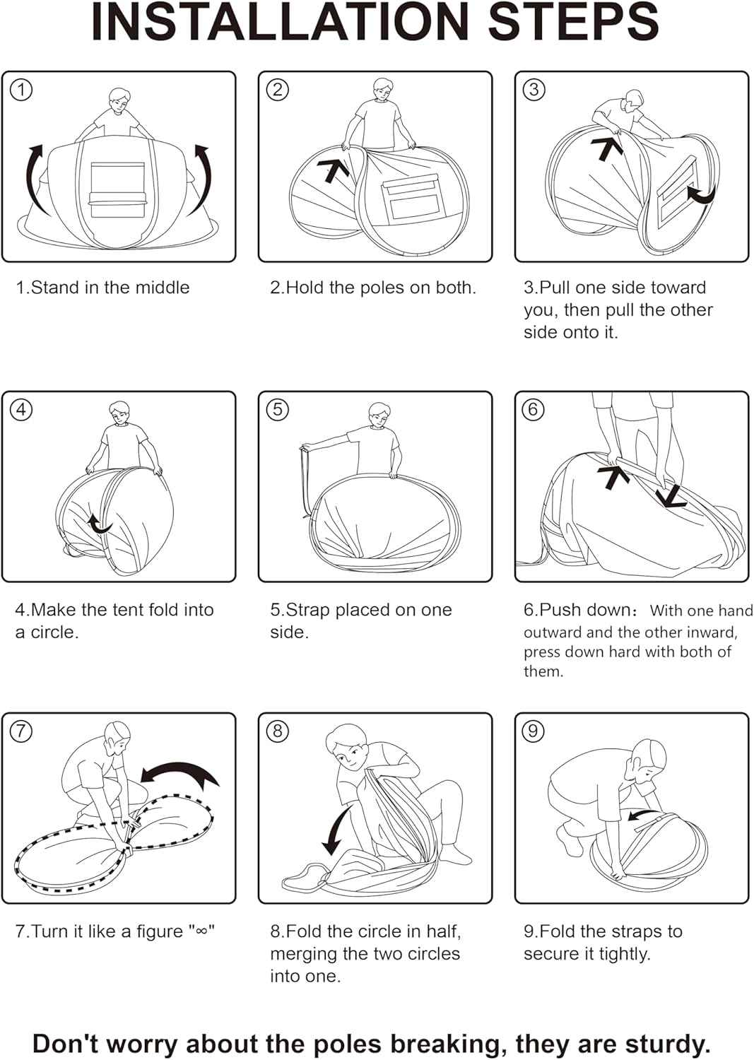 The 4 Person Easy Pop Up Tent makes camping easy from the start. First, remove it from the carry bag. Then, simply let go. The pre-attached poles pop the tent open in seconds. Because of this instant setup, you save time and enjoy the outdoors faster.