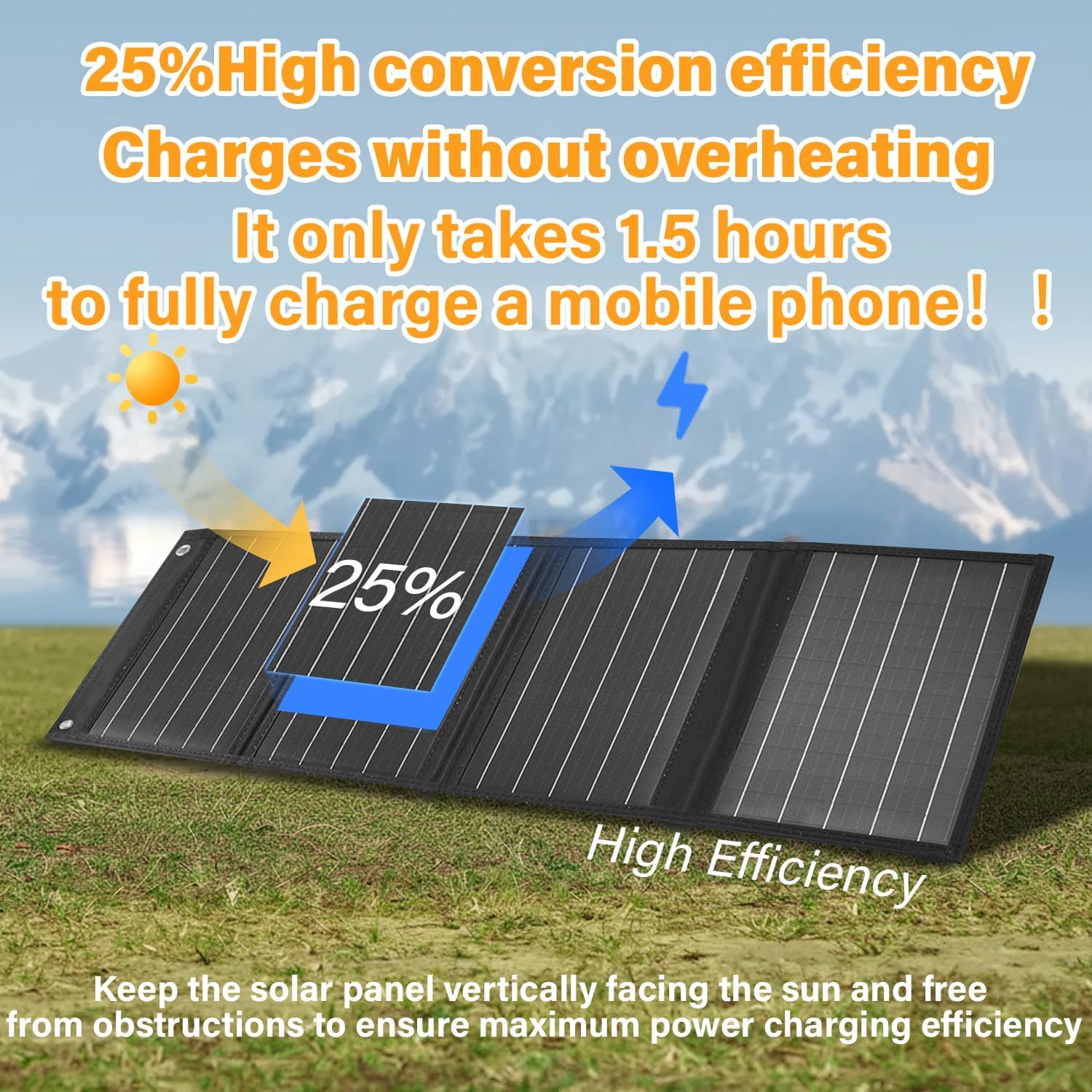 - 【Usage Instructions】The product data is based on professional and genuine test results. Daily use may be affected by weather and environmental conditions.Key usage instructions: To ensure optimal charging efficiency, position the solar panel vertically towards direct sunlight — shadows or partial shading will reduce performance. It is recommended to use this device in clear weather without any obstructions.