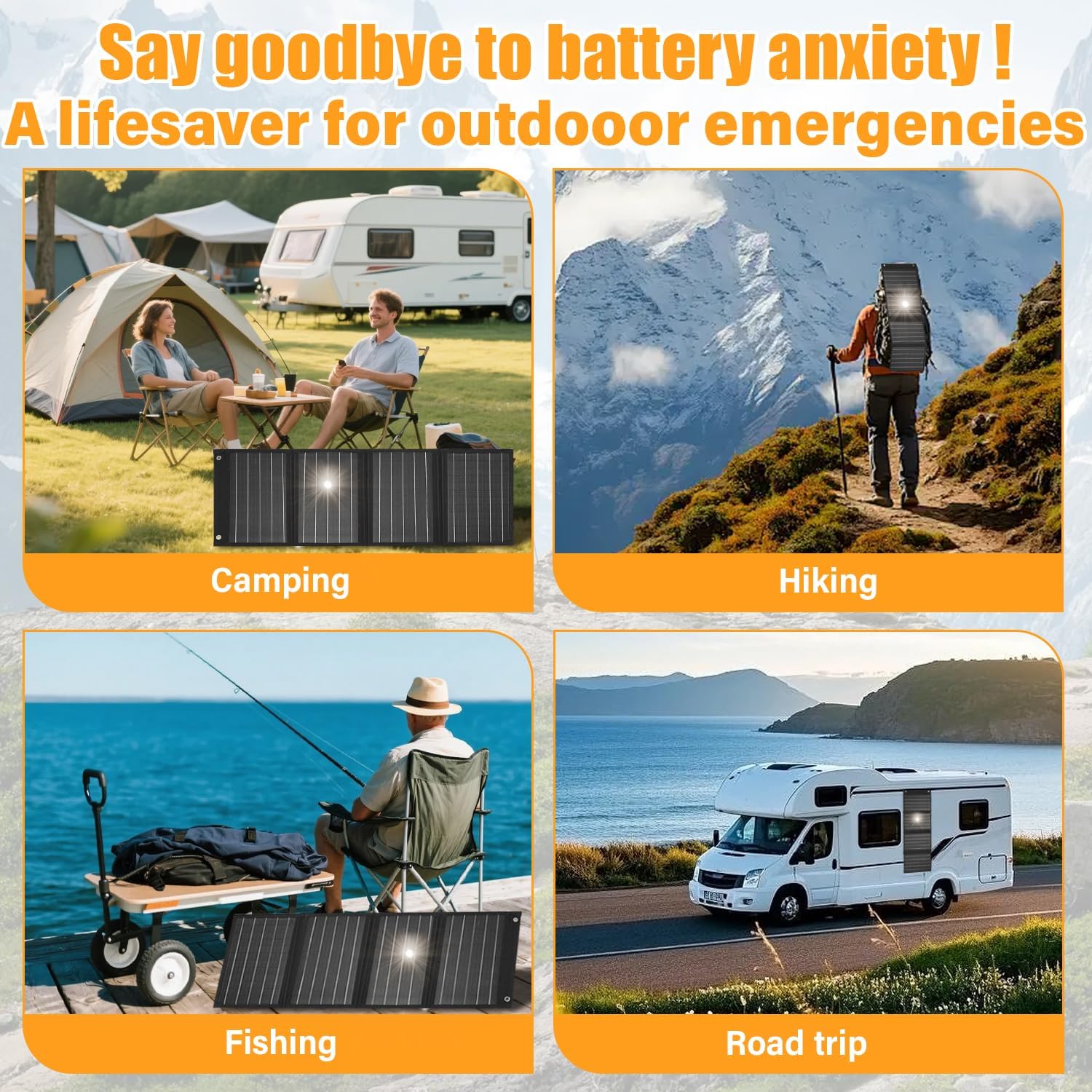 - 【Lightweight Foldable Design】 This compact solar panel provides efficient power output while maintaining portability. It is suitable for mobile camping, mountain climbing, hiking, road trips, fishing, and off-grid adventures. Equipped with two reinforced metal hanging holes, it can be easily mounted on backpacks, tents, cars, or trees. When folded, it measures only.7.8×10.9 inches and weighs as light as 1.65 pounds (0.75 kg), allowing for easy storage in a backpack and ensuring energy supply in various scenarios. As an essential piece of equipment for outdoor enthusiasts, it is also a key component in emergency preparedness kits.