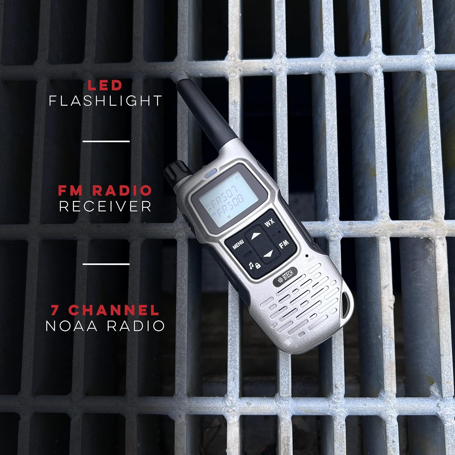 - Rugged and Versatile — The FRS-A1 is IP54 weather resistant, meaning it can reasonably be used in all weather situations. The FRS-A1 can be charged easily with any USB-C cable . The docking station can also charge backup batteries without the radios present. The FRS-A1 allows quick monitoring of all traffic on a channel with the monitor key (no matter what privacy tone is in use), and also includes a built-in flashlight and built-in FM radio.