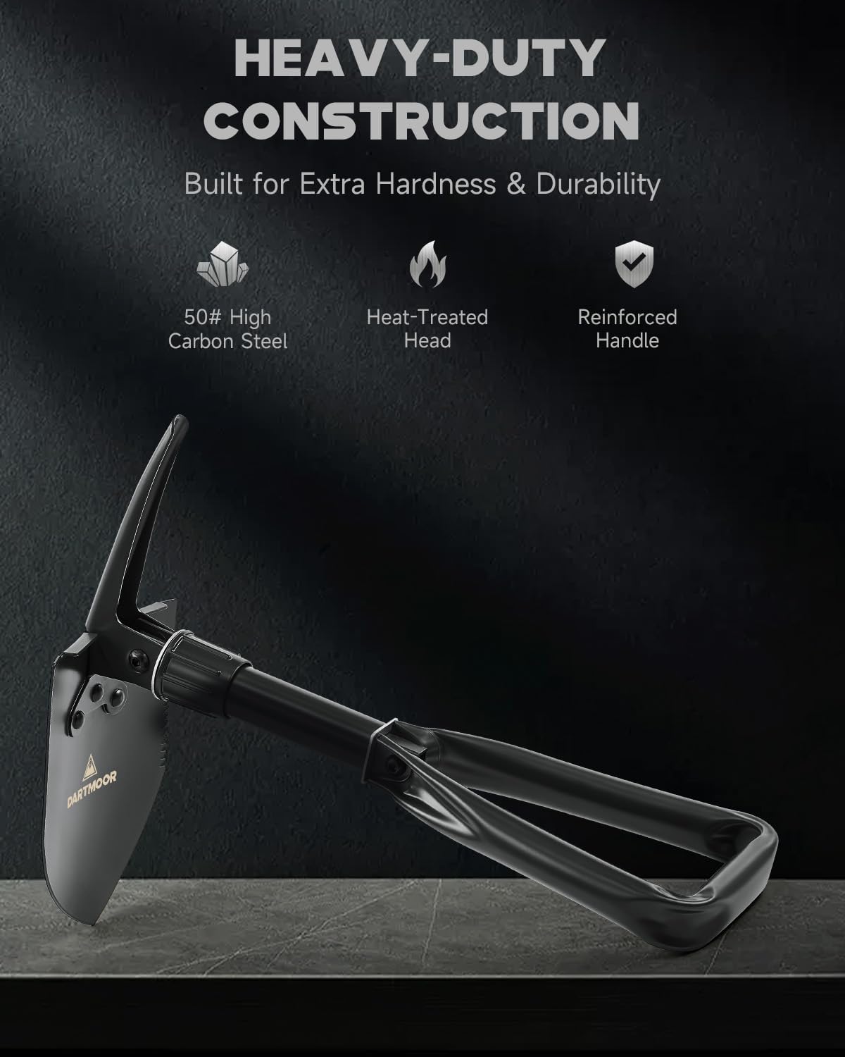• PREMIUM MATERIALS: Carefully constructed with high-carbon steel, this heat-treated mini folding camp shovel is built to last with rust-resistance & anti-deformation. The tactical military shovel is a rugged tool for digging, shoveling, sawing, chopping, and entrenching