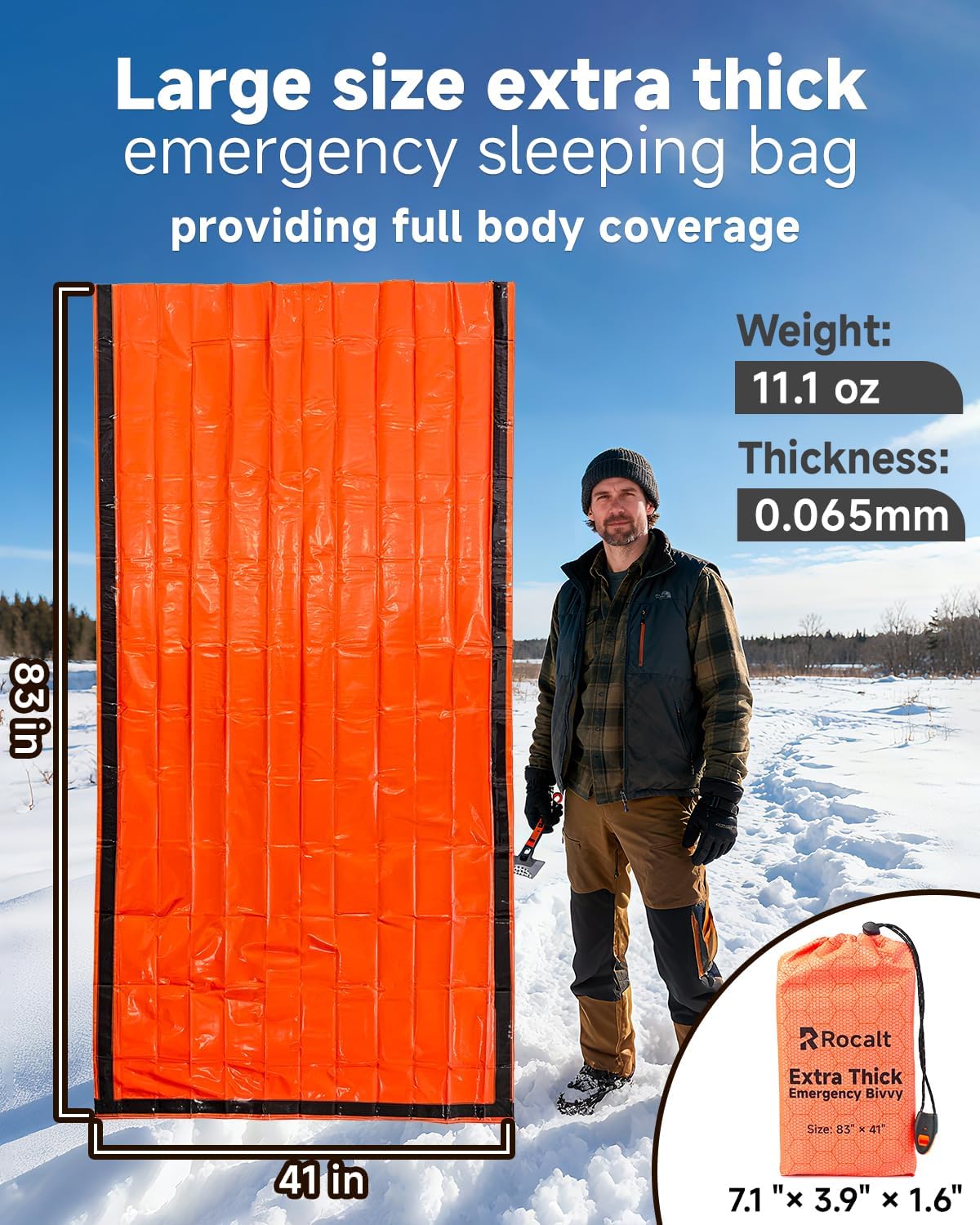 The Emergency Mylar Sleeping Bag uses NASA-developed Mylar to reflect and retain up to 90% of your body heat. It keeps you warm even in harsh weather. Whether it’s heavy rain, snow, or freezing winds, this bag provides reliable warmth. As a result, you can stay safe and focused in any emergency situation.