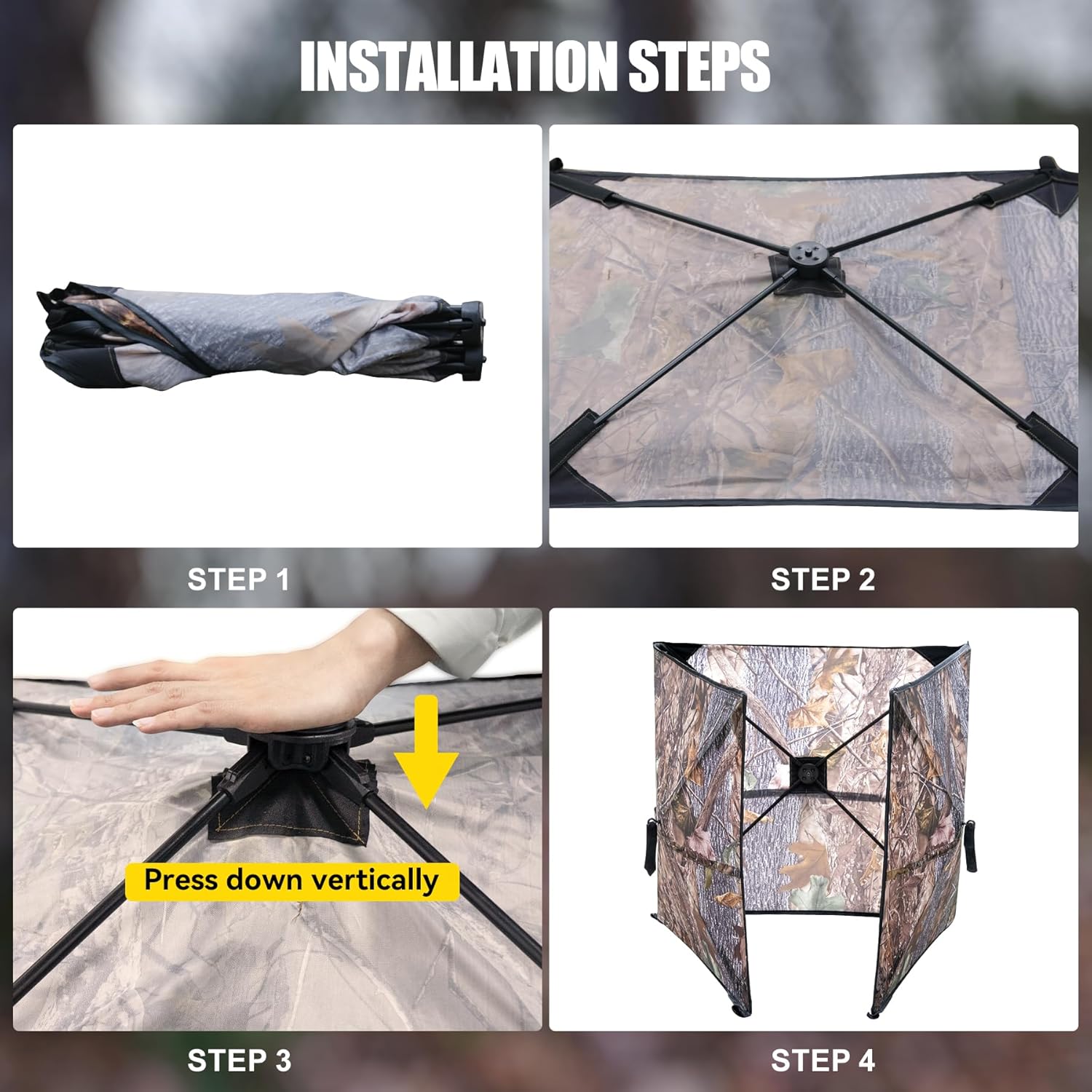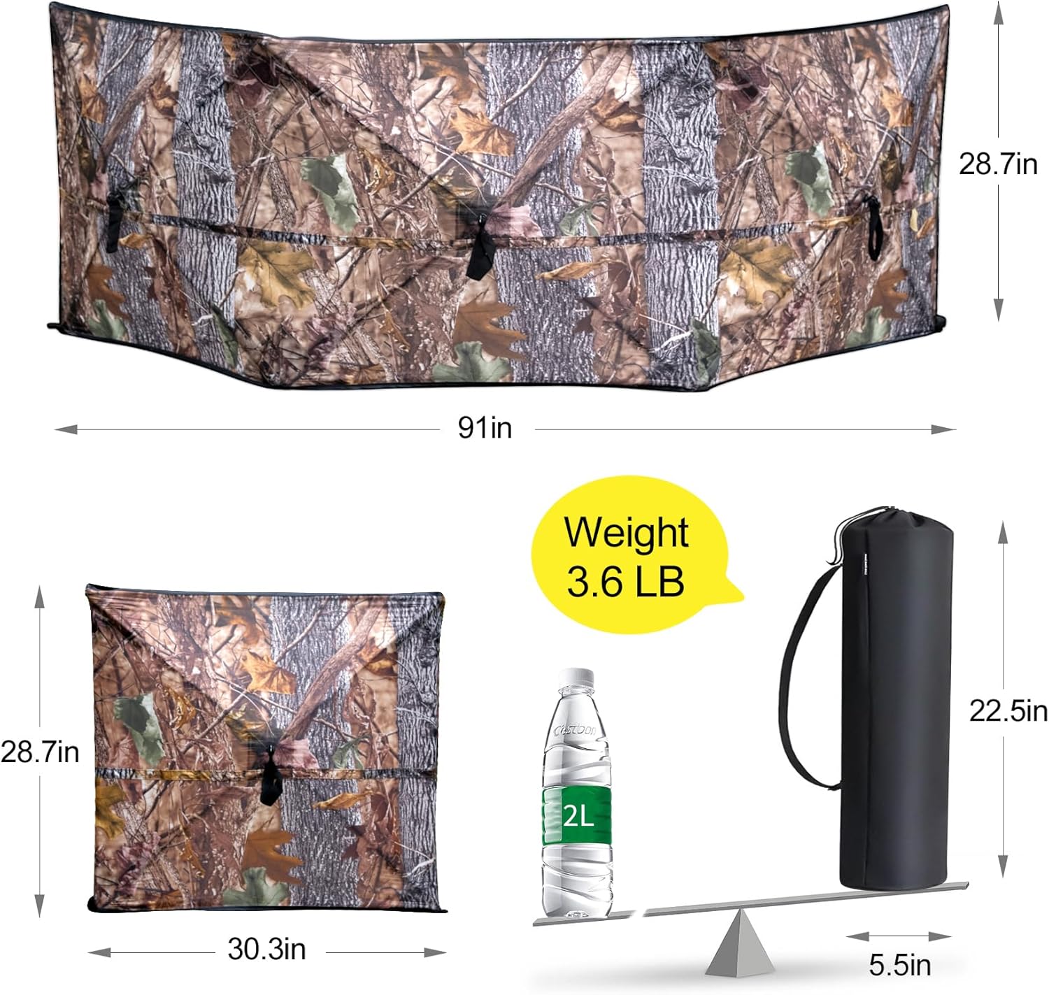 • 【Durable and Weather Resistant】Hunting blinds ground crafted from durable materials, this blind can withstand harsh outdoor conditions. It’s also quick-drying fabric, suitable even on rainy days, 3-panel blind against the wind for trustworthy concealment in any weather.