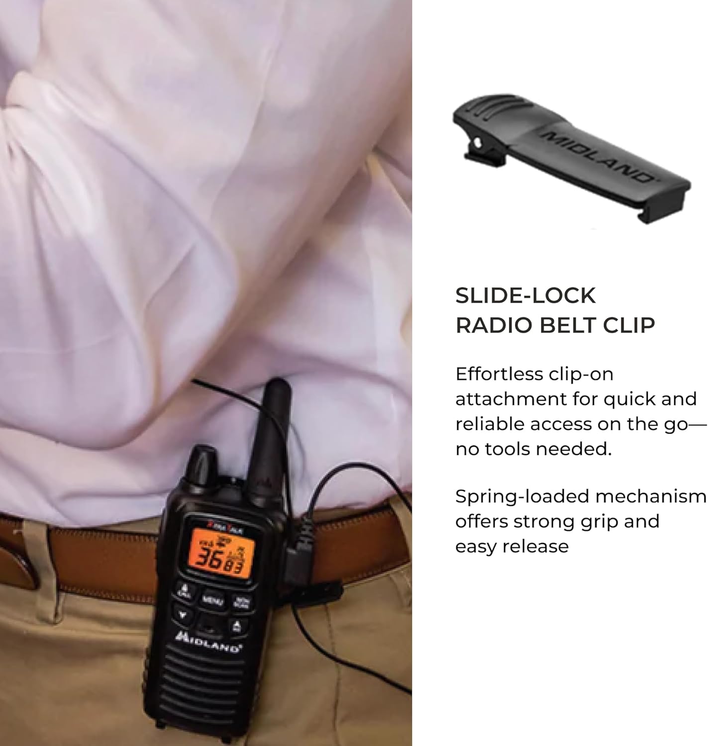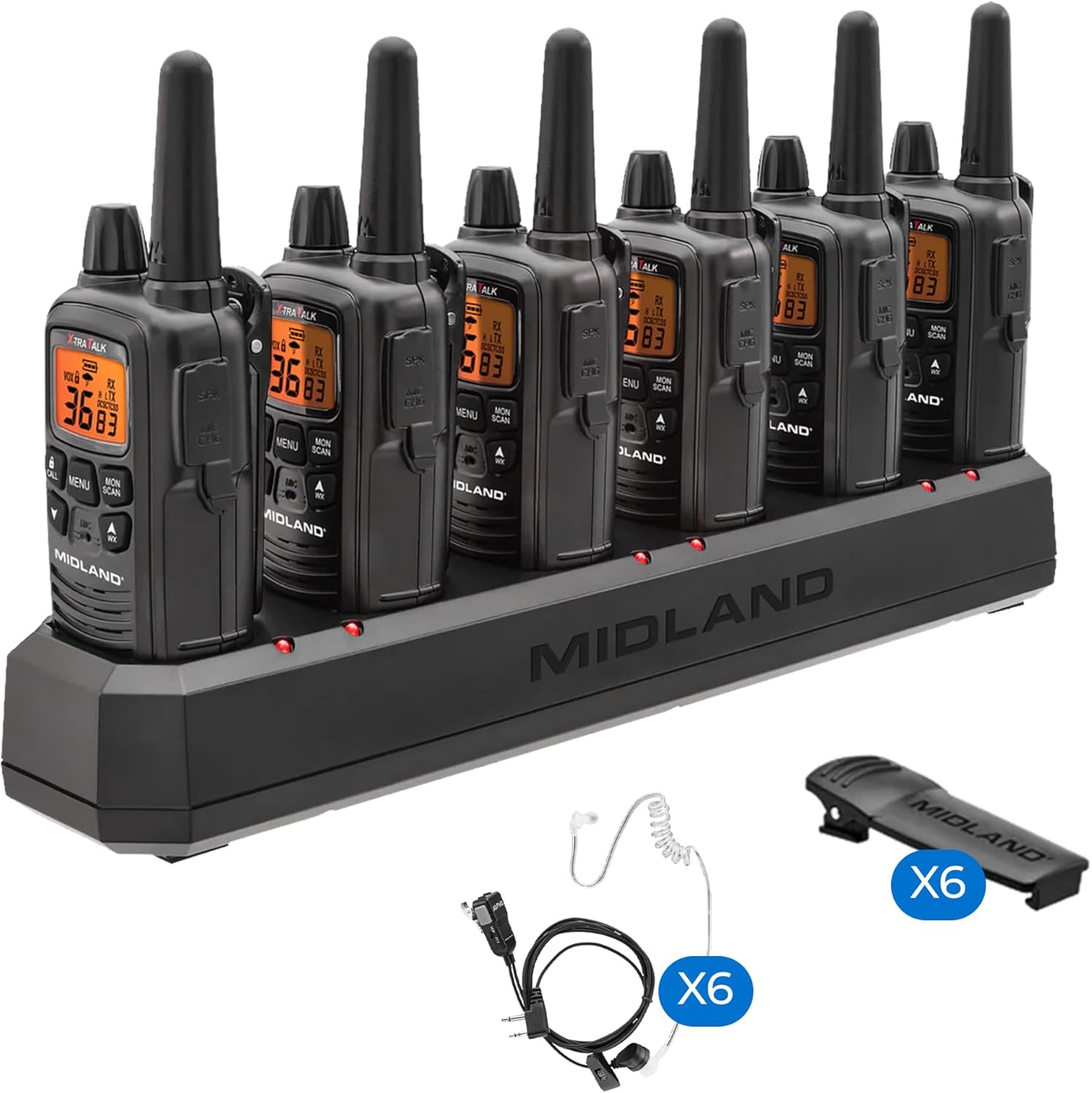 LXT600BBX6 Midland LXT600BBX6 FRS Business Walkie Talkies – Long Range 36-Channel Two-Way Radios with Headsets and Charging Base, NOAA Weather Alerts (6-Pack, Black)