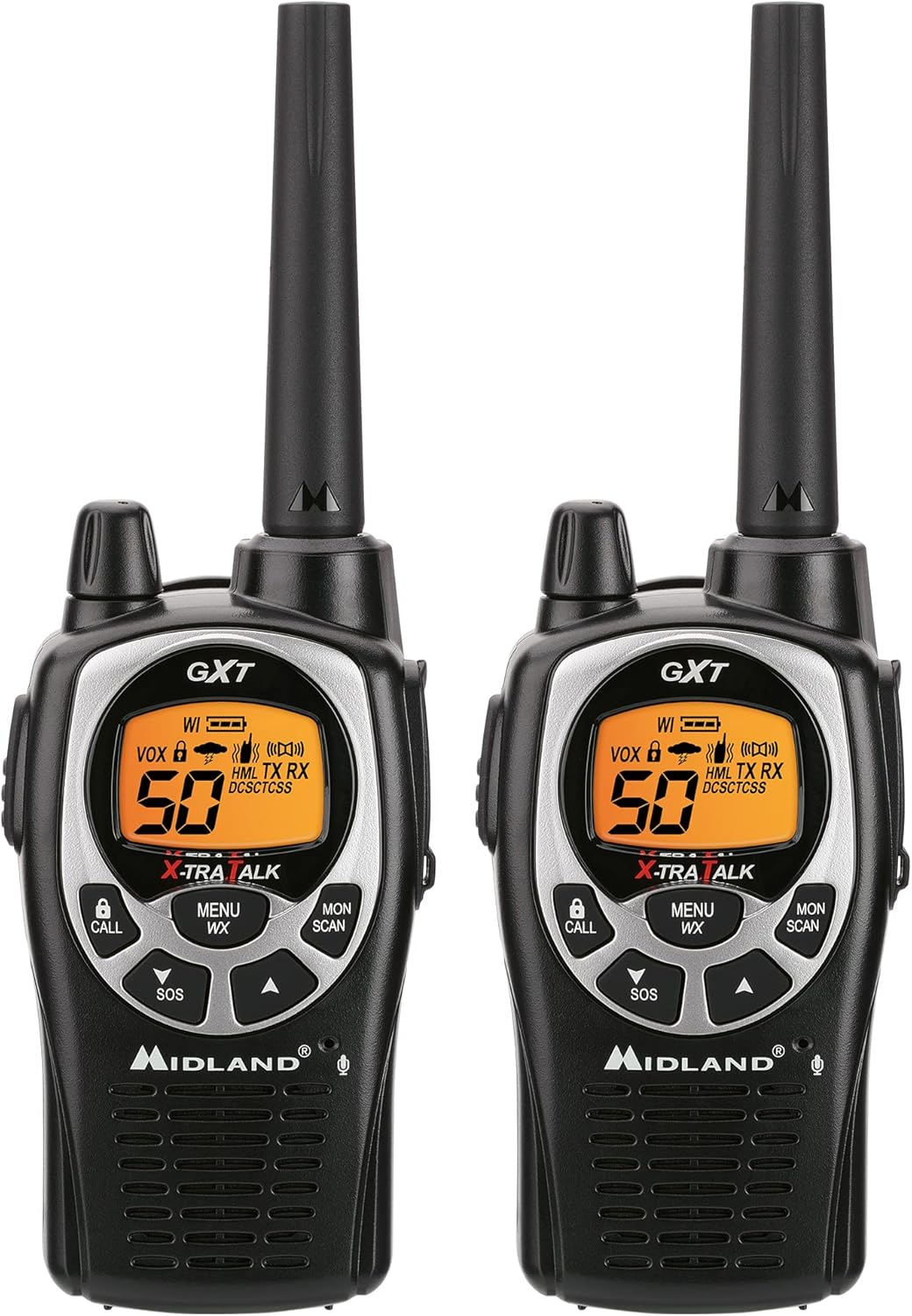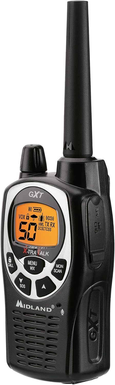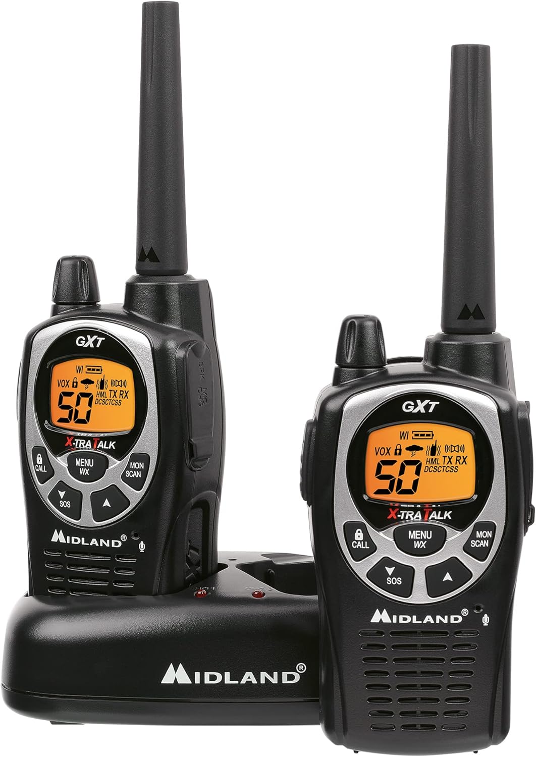 - 22-Channel (plus 28 extra), waterproof, two-way GMRS radios with range up to 22 miles