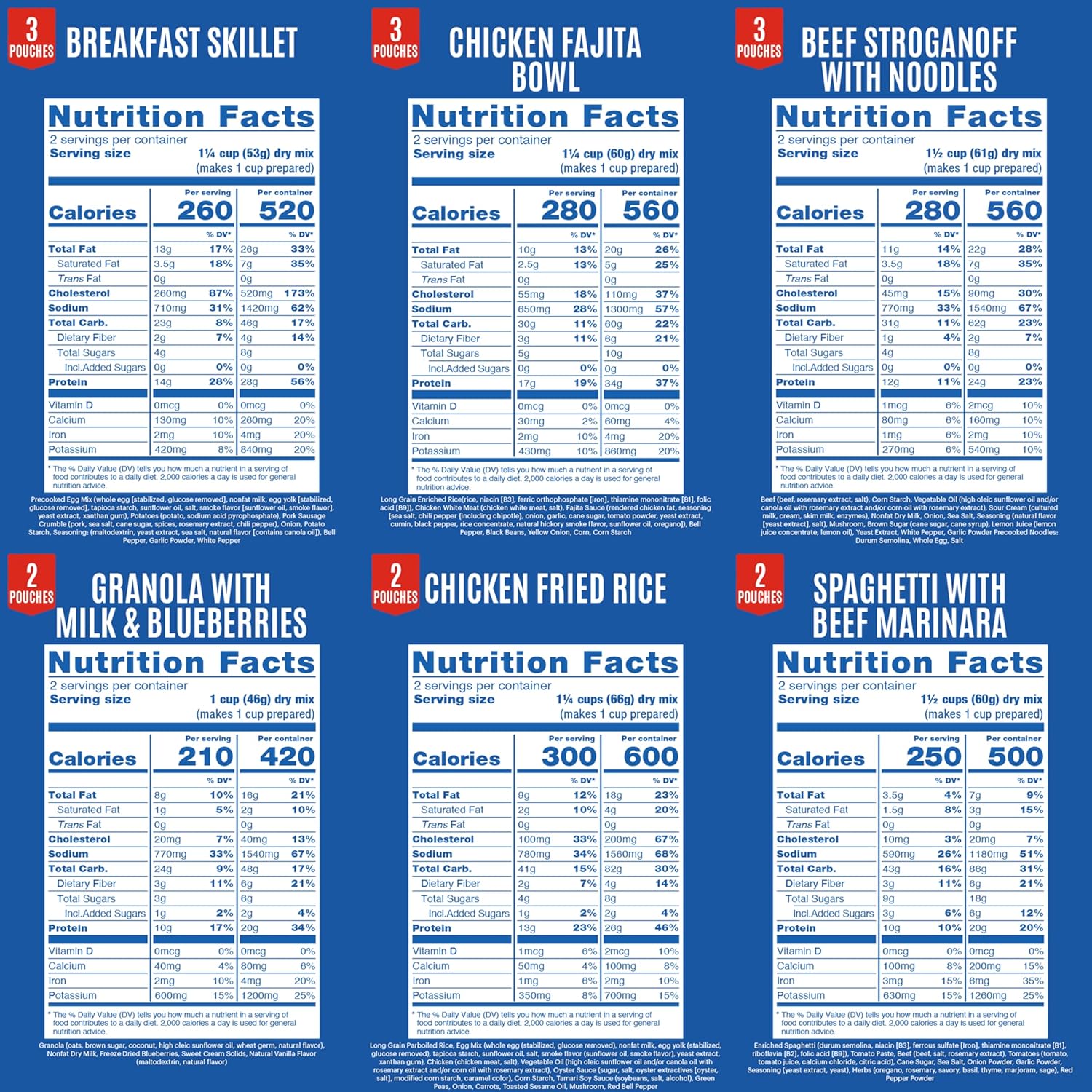 Each meal uses high-quality ingredients with no fillers or artificial flavors. The bucket contains 15 pouches (30 servings total):
