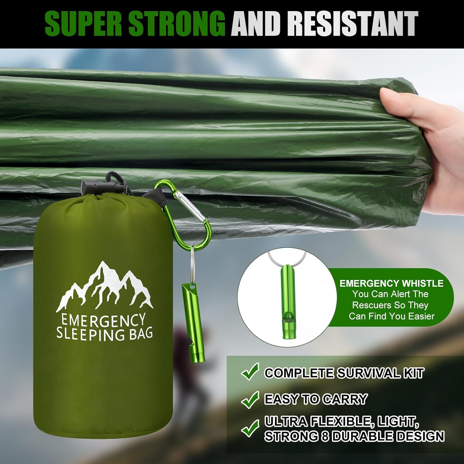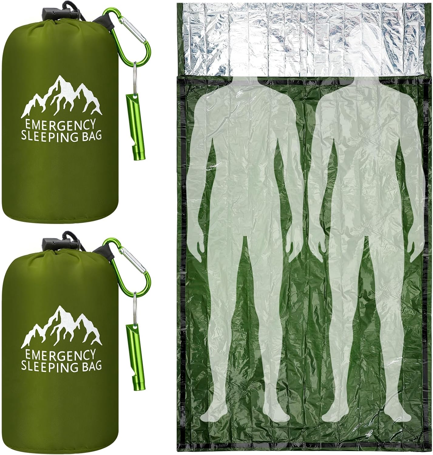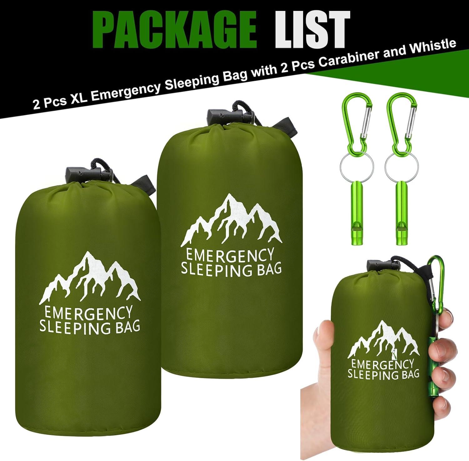 • Integrated Emergency Kit: the package contains 2 emergency sleeping bags; Each one is equipped with an emergency whistle and a carabiner, ensuring that you are fully prepared in emergency situations; The whistle can be applied to send out distress signals, while the carabiner can be easily attached to your backpack