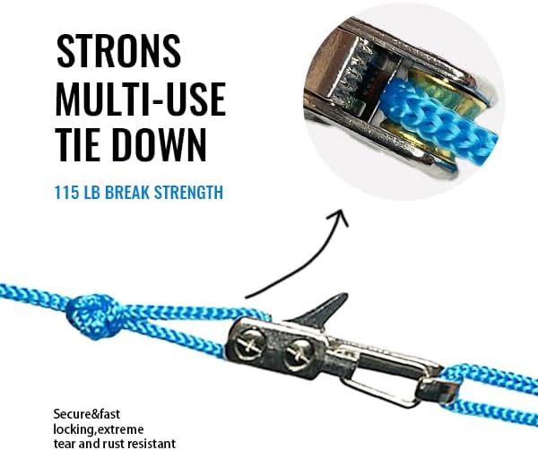 • Crafted with a heavy-duty aluminum cam, rust-resistant and durable with a 115 lb load capacity. The rope is multi-strand nylon braided, tested to hold 35 lbs without stretching. Built to last through rugged use.