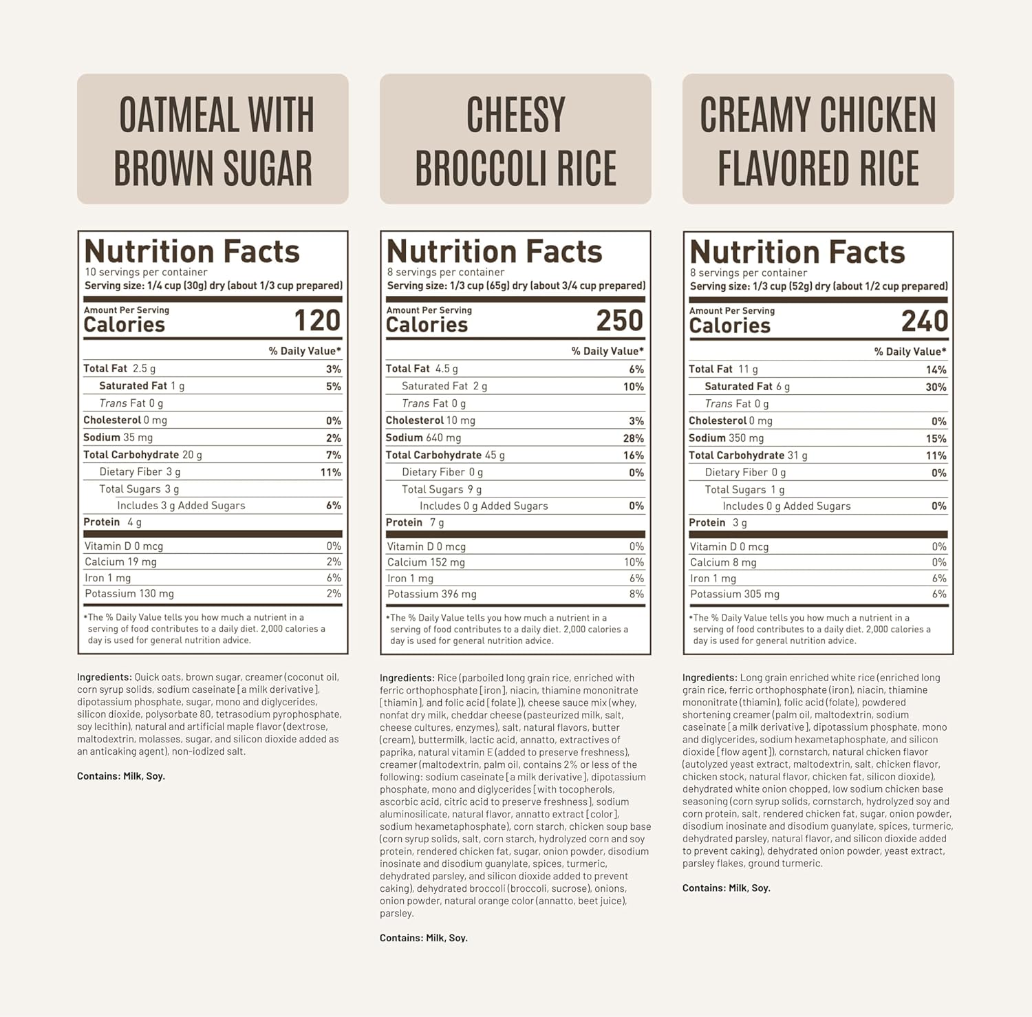 • Variety in Every Bite: Indulge in comforting tastes with oatmeal with brown sugar, creamy chicken flavored rice, and savory cheesy broccoli rice.