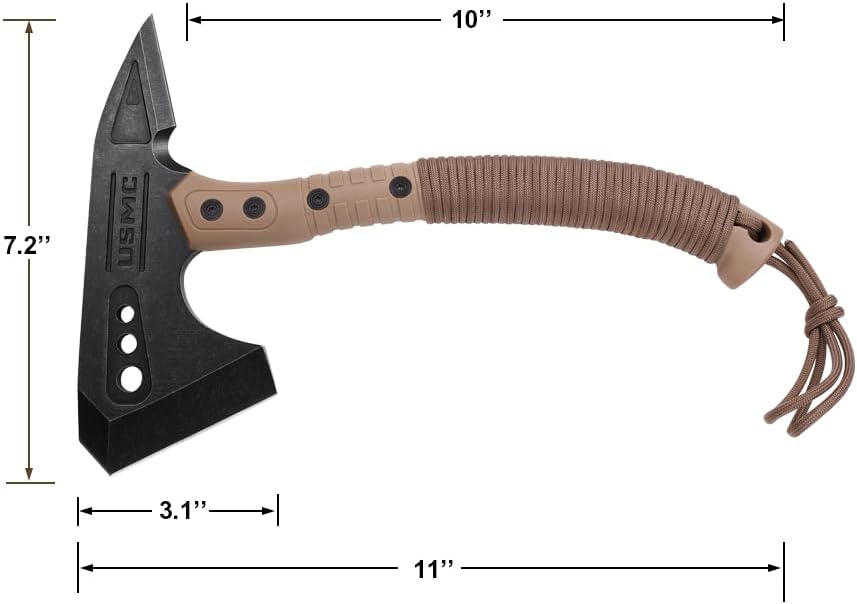 The Tactical Tomahawk Licensed by USMC delivers power, balance, and reliability in one compact tool. Whether you camp in the woods, go hunting, or prepare for tough conditions, this tomahawk helps you stay ready. Its full tang design runs through the entire handle, giving you extra strength with every swing. As a result, you can trust it during heavy use.
