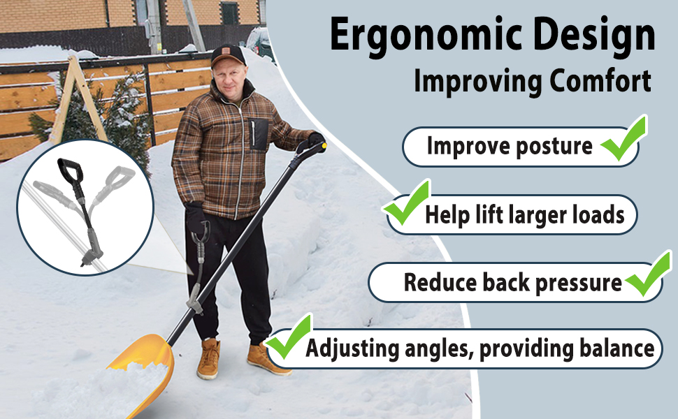 - Elastic Handle Design: The shovel handle is crafted from high-quality plastic and rubber to ensure its durability and resistance to breakage. Its lightweight design means you wont feel any extra burden while using it. The rubber handle rod has a certain degree of elasticity to help you save energy during snow throwing, adjust the angle of force, provide you with excellent balance and control. With its D-shaped design, this handle allows for a firm grip that is both comfortable and slip-resistant