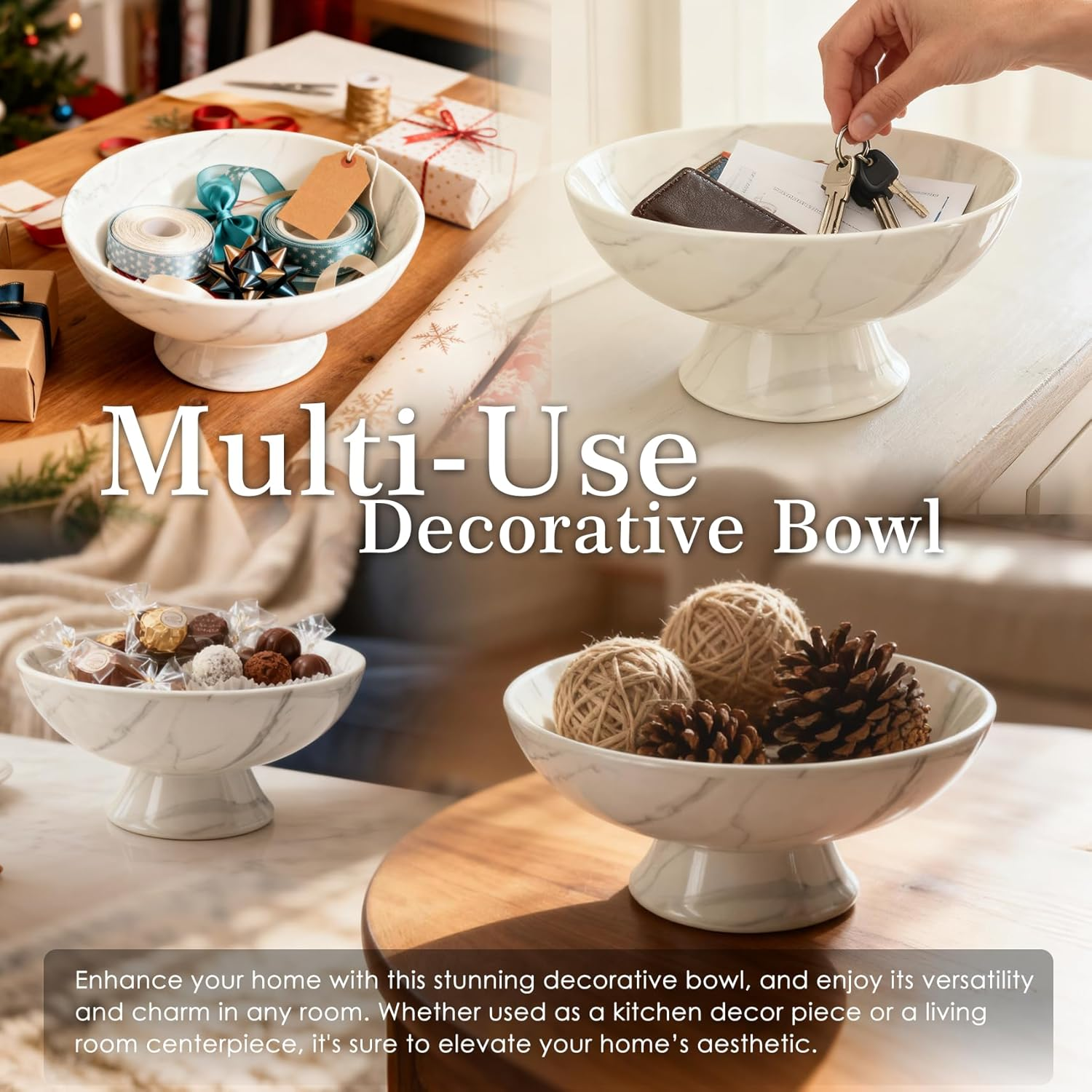 Overall, the White Marble Texture Pedestal Fruit Bowl blends elegance, functionality, and durability. Because it is versatile, easy to clean, and visually stunning, it elevates your home decor while keeping everyday life simple. Add this bowl to your kitchen or dining room and enjoy a perfect balance of style and practicality.