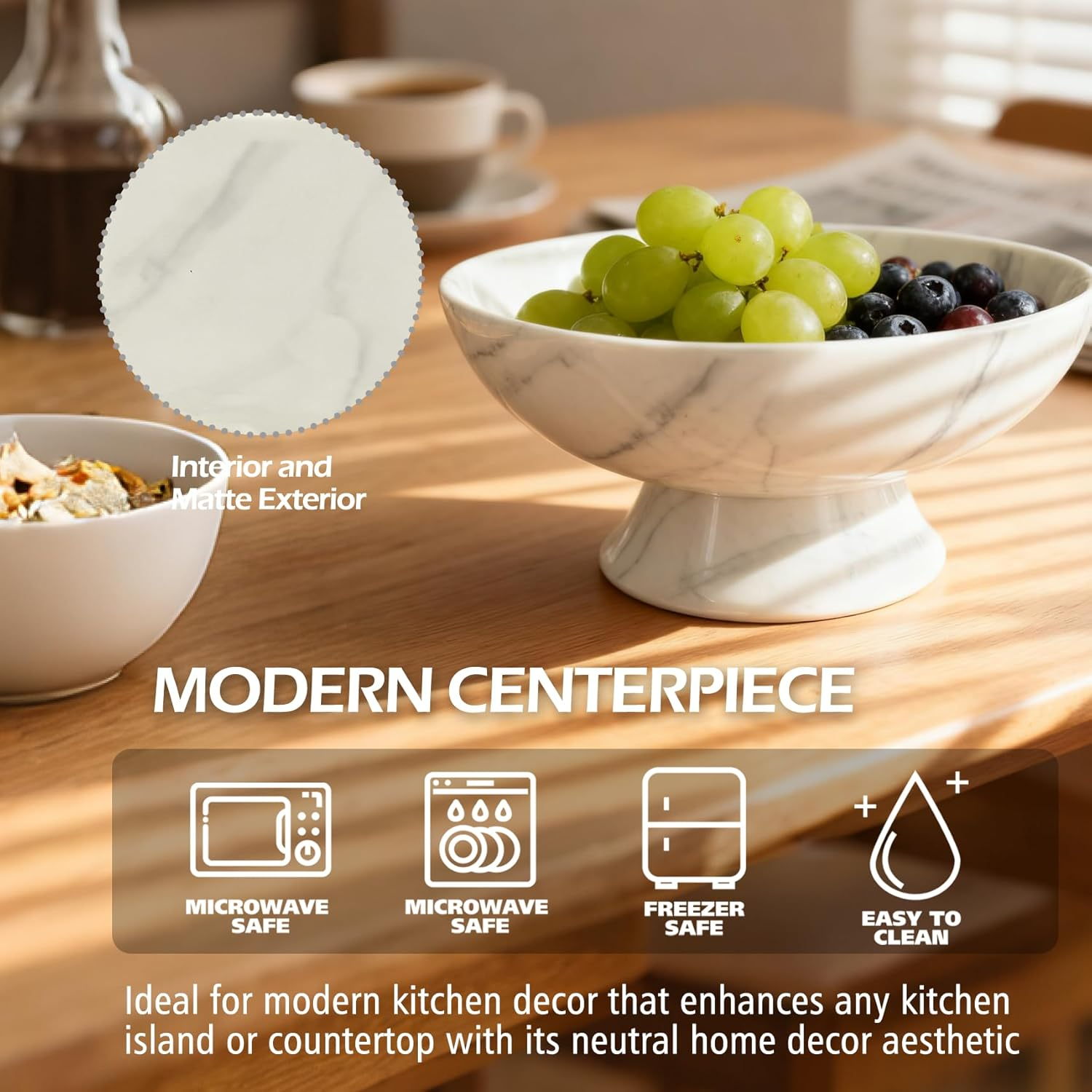 Why Choose the White Marble Texture Pedestal Fruit Bowl?